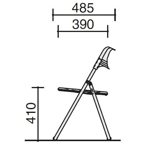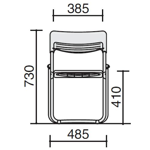 幅:485mm / 奥行:485mm / 高さ:730mm / 座幅:385mm / 座奥行:390mm / 座高:410mm / 折りたたみ時高さ:885mm / 折りたたみ時厚さ(1脚目):116mm / 折りたたみ時厚さ(2脚目):30mm / 自重:2.5kg |