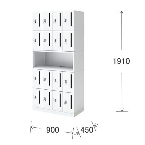 コクヨ イノン(iNON) ホワイトタイプ コンパクトタイプ 庫内仕切りVタイプ 電源なし プッシュオートロック錠 メール穴あり 4列4段・16人用 中段オープン W900 D450 H1910mm
