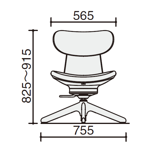 幅:565 / 奥行:535~610mm / 高さ:825~915mm / 座幅:570mm / 脚羽径:755mm / 座奥行:440mm / 座高:420~510mm |