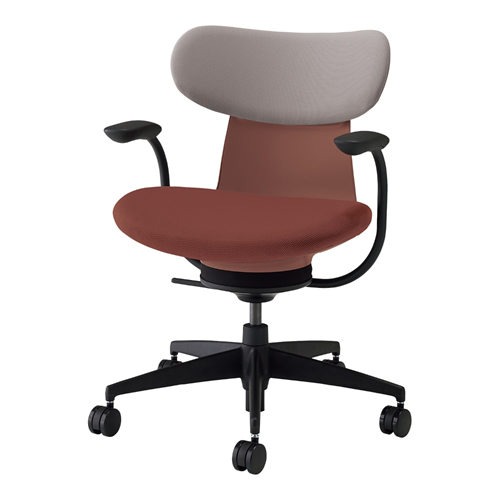 コクヨ イングライフ(ingLIFE) 背クッションタイプ 5本脚タイプ 肘付き ブラック脚 布張り 背座別色 背張地カラー ミディアムグレージュ 座・本体カラー ブリックレッド