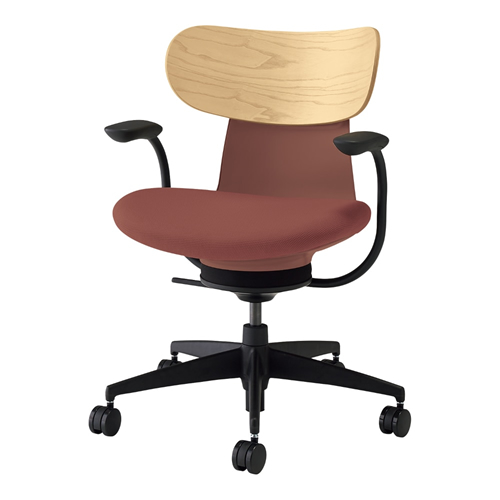 コクヨ イングライフ(ingLIFE) 背合板タイプ 5本脚タイプ 肘付き ブラック脚 布張り 背合板カラー ホワイトアッシュ 座・本体カラー ブリックレッド