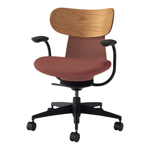 コクヨ イングライフ(ingLIFE) 背合板タイプ 5本脚タイプ 肘付き ブラック脚 布張り 背合板カラー ミディアムアッシュ 座・本体カラー ブリックレッド