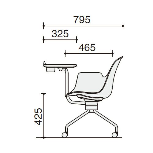 幅:600mm / 奥行:795mm / 高さ:800mm / 座幅:450mm / 座奥行:465mm / 座高:425mm / メモ台高さ:720mm / メモ台幅:600mm / メモ台奥行:325mm |