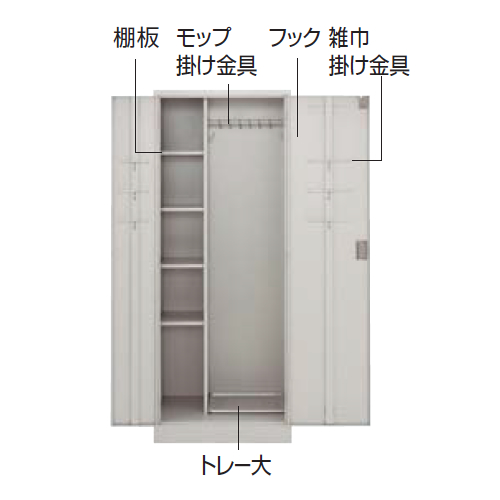 棚板(4枚)、トレー(大1個)、雑巾掛け金具(6個)、フック(2個)、モップ掛け金具(6個) |