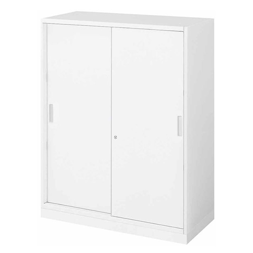 本体・引き戸・棚板/スチール、焼付塗装 等分布耐荷重:棚板1枚あたり約50kgf 棚板枚数:2枚 棚板可動ピッチ:23.4mm 鍵2本付 |