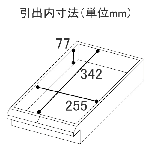 ●トレー内有効寸法 幅:255mm / 奥行:342mm / 高さ:77mm ※トレー耐荷重:2.1kgf
