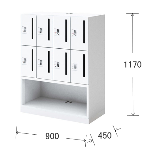 コクヨ イノン(iNON) ホワイトタイプ コンパクトタイプ 庫内仕切りVタイプ 電源なし プッシュオートロック錠 メール穴あり 4列2段・8人用 下段オープン W900 D450 H1170mm