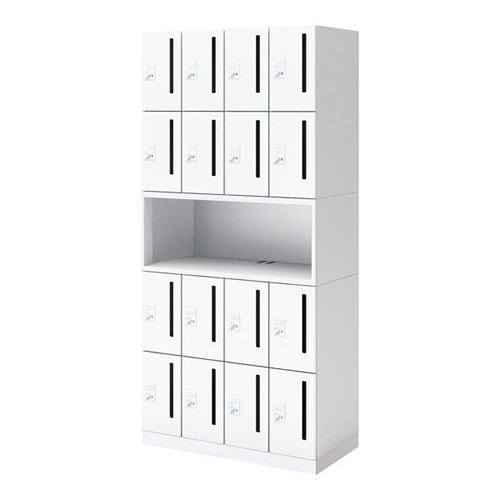 コクヨ イノン(iNON) ホワイトタイプ コンパクトタイプ 庫内仕切りVタイプ 電源なし ダイヤル錠 メール穴あり 4列4段・16人用 中段オープン W900 D450 H1910mm