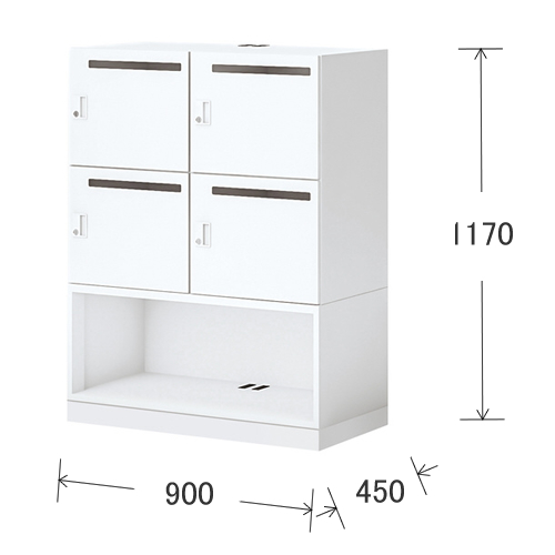 ●本体 幅:900mm / 奥行:450mm / 高さ:1170mm ●扉内 幅:412 / 奥行:378 / 高さ:328mm ●庫内仕切り下部内寸法 幅:388 / 奥行:312 / 高さ:40mm ●メール穴開口部 幅:340 / 高さ:25mm ●下段オープン部 幅:862mm / 奥行:448mm / 高さ:320mm |