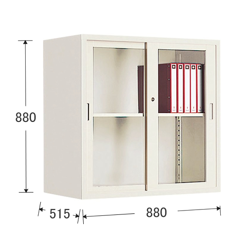 コクヨ 保管庫深型 D500タイプ ガラス引き違い戸タイプ 上置き 2段 W880 D515 H880mm