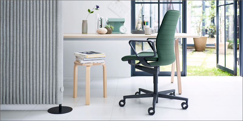 インテリアとして空間に溶け込む佇まい、素材感あふれる柔らかなデザインでオフィスチェアの機能性を包み込みました。 ワークとライフのシームレスな空間を叶える、インテリア発想から生まれたオフィスチェアです。