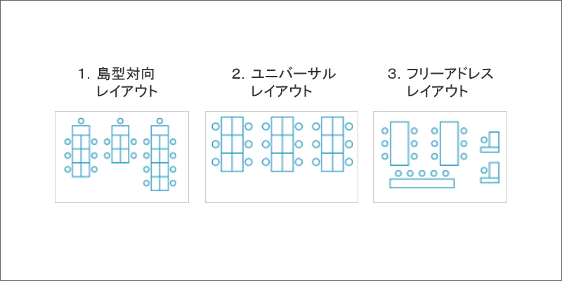 ・ユニバーサルレイアウト/組織ごとに配置されるが、その中で人数を調整できる方式です。