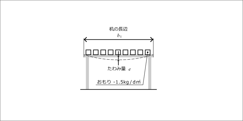 書類などの重さで一定期間に、天板がどれくらいたわむかを想定しています。