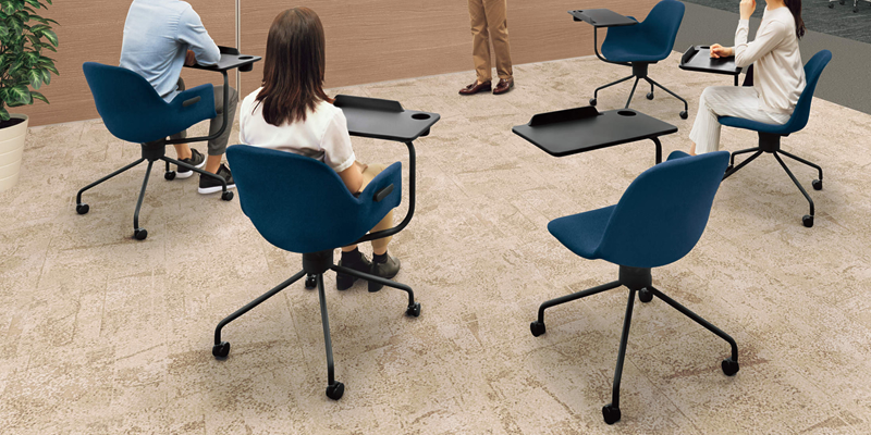 アクティブな交流を可能にするタスクチェアを活用する事で、アイディアの創出や社員の交流に新たな動きを生みだすことができます。 社員も発言しやすくなったり、他のチームでどんなプロジェクトが進行しているのか情報が入ってくるなど、様々な効果が期待できます。